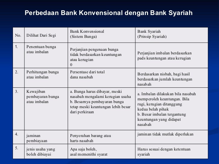 Apabila usaha yang dijalankan mengalami kerugian, seluruh kerugian ditanggung shahibul maal, kecuali ditemukan adanya kelalaian atau kesalahan yang diperbuat mudharib, seperti. Implementasi prinsip syariah inilah yang menjadi pembeda utama dengan bank konvensional. Bank umum syariah, bpr syariah dan baitul mal wa tamwil (bmt).