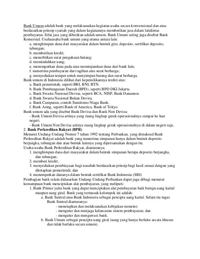 10 tahun 1998 disebutkan bahwa bank umum adalah bank yang melaksanakan kegiatan usaha secara konvensional dan/atau berdasarkan prinsip syariah yang dalam kegiatannya memberikan jasa dalam lalu lintas pembayaran.