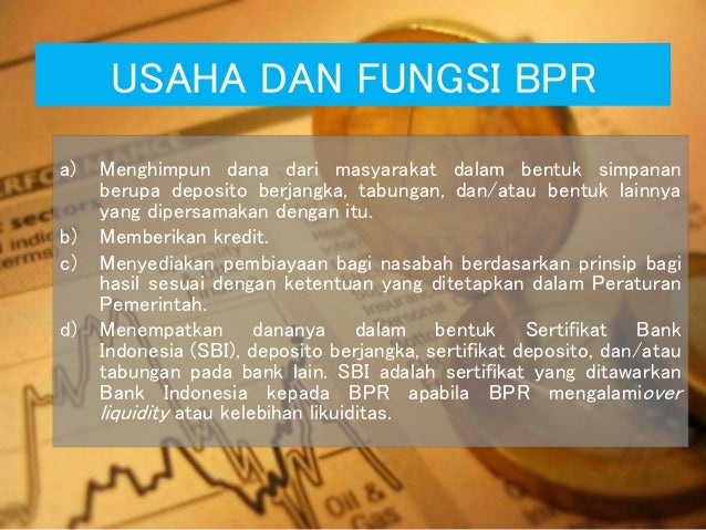 Dana dari nasabah ini disalurkan untuk kegiatan usaha produktif. Bank perkreditan rakyat (bpr), yaitu bank yang melaksanakan kegiatan usaha secara konvensional atau berdasarkan prinsip syariah yang dalam kegiatannya tidak memberikan jasa dalam lalu lintas pembayaran. Bank syariah berasal dari dua kata, yaitu bank dan syariah.