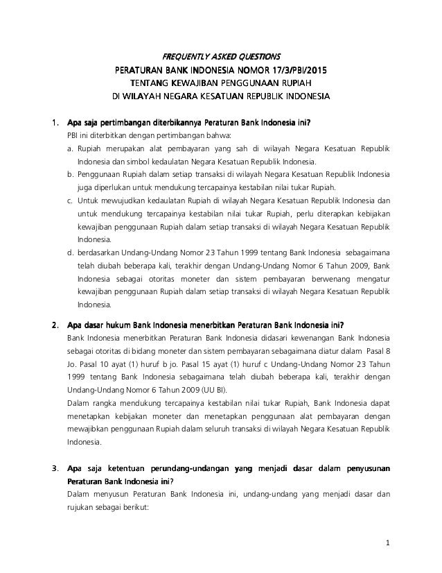 FAQ Peraturan Bank Indonesia Nomor 17/3/PBI/2015 INFO