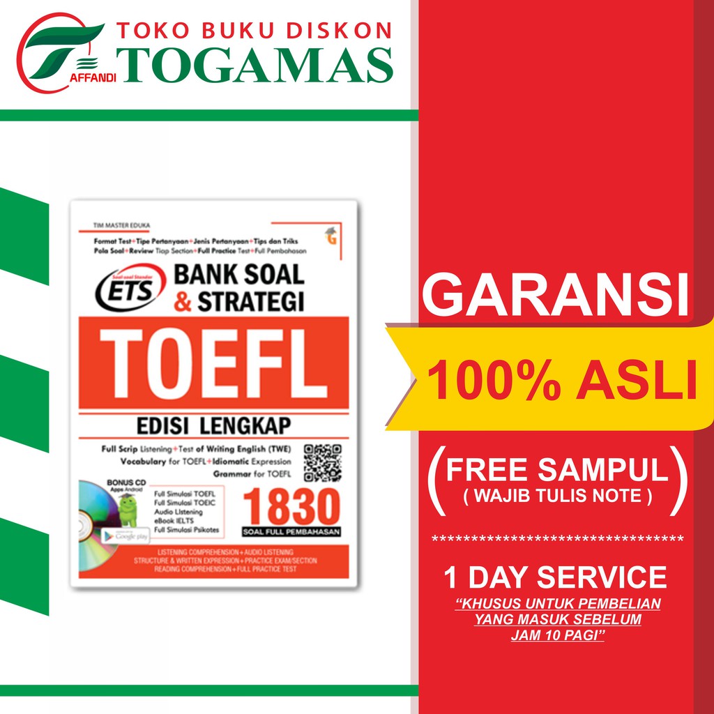 Jual Bank Soal TOEFL Test (Paper Test) Kota Tangerang